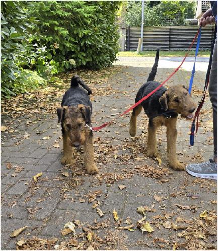 Wir sind zwei fröhliche und aufgeweckte Lackritznasen. Wir kennen Auto fahren, Spaziergänge, Welpenschule und sind Stubenrein.
